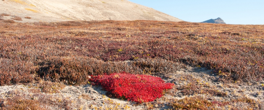 Het doel is een Zodiac cruise in de buurt van Røde Ø, een van 's werelds meest bejubelde ijsberg bezienswaardigheden: Het sobere blauw-wit van de ijsbergen steekt scherp af tegen de broedende rode achtergrond van de sedimenthellingen. Het middagplan is om door de noordelijke delen van Røde Fjord te varen, met de kans om muskusossen en warme herfstbladeren te zien.